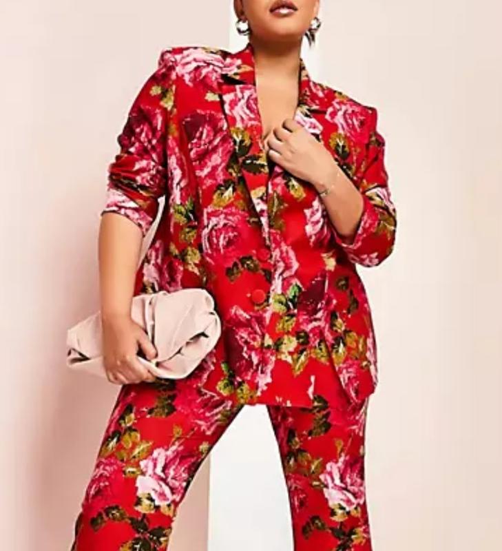 Блейзер красного цвета с рисунком Длина 74 по переду ПО груди 62 ПО талии 61 ПО бёдер 68 рукав 63 плечи 47