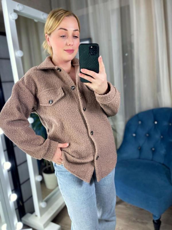 Теплая рубашка барашек на пуговицах мокко р. 42-48