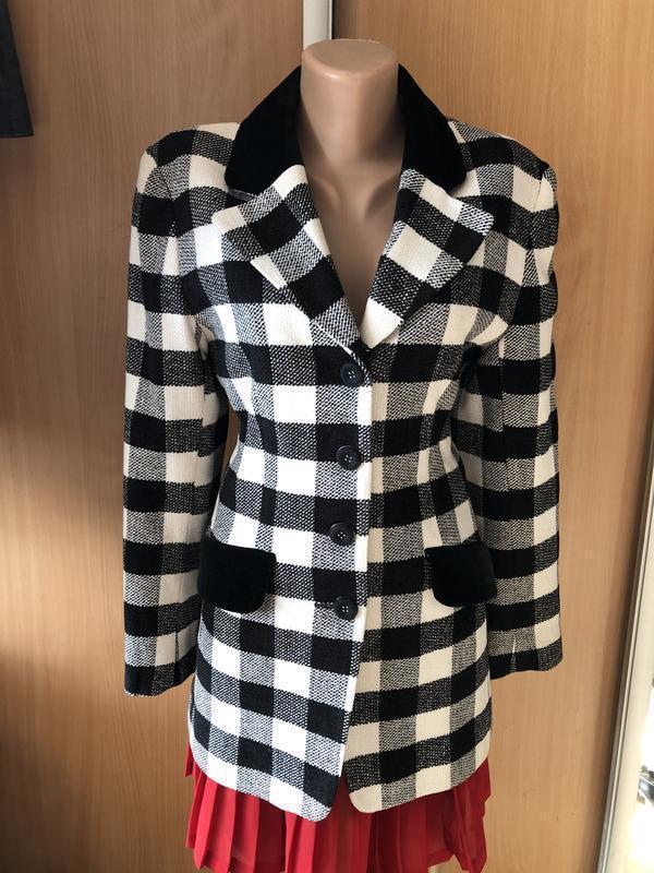 Элегантный блейзер пиджак жакет в клетку с шерстью с бархатной отделкой