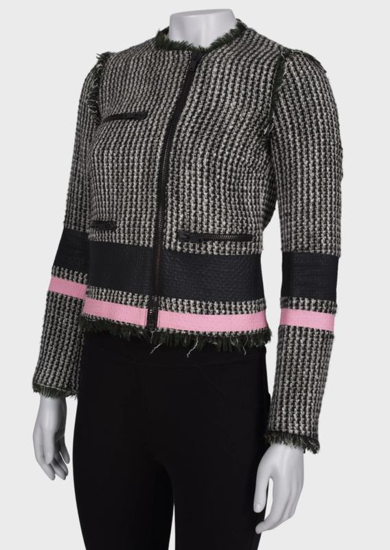 Теплый твидовый жакет, 77% шерсти в составе Оригинальный, купленный на сайте yoox Размер 38 IT, идеально на XS, небольшой S Стан - идеальный Длина 53см ПОГ 44см ПОТ 40см Длина рукава 60см 3 функциональных кармана на молниях