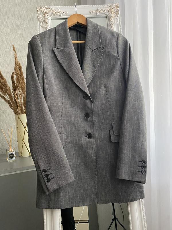 Шикарний подовжений жакет, гарно підкреслює силует, має підклад, якісний, підійде на розмір s-m Стан ідеальний. Заміри по запиту надам 😉