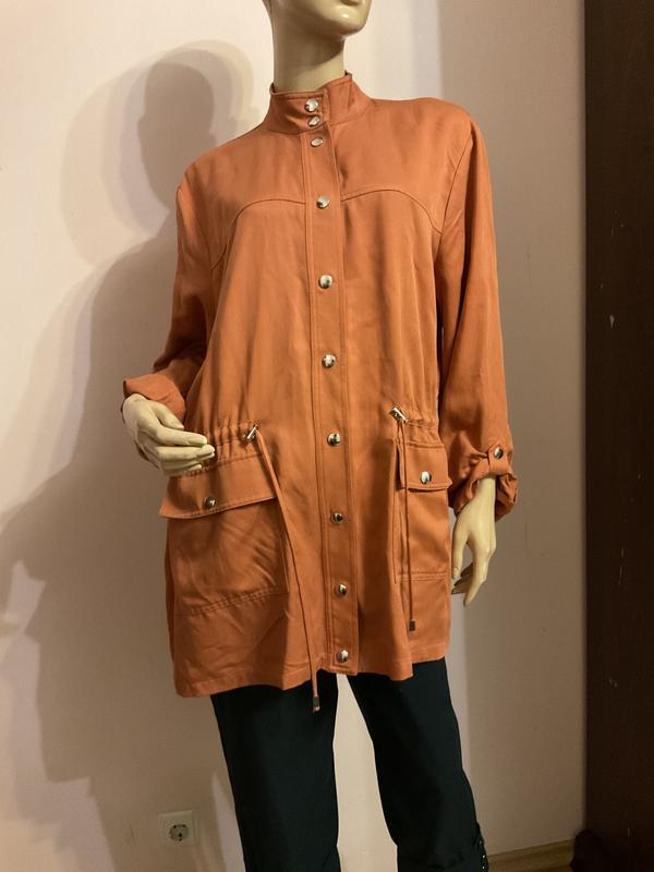 Ткань средняя. Без нюансов. Рукав на кнопке. В талии - кулиска. Замеры в груди 58 см в талии 55 см в бедрах 64 см длина 80 см в плечах 44 см рукав 60 см в плечах 44 см 6:12:23