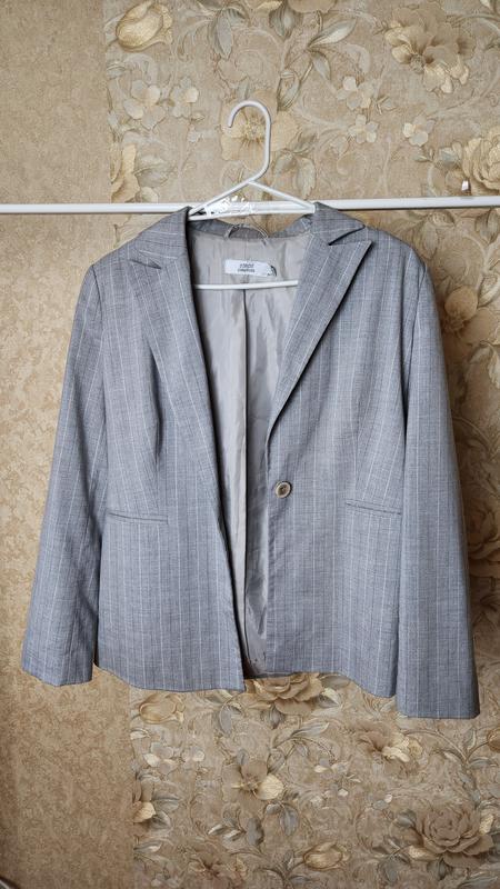 стильный пиджак серого кольра, в полоску, состояние идеально