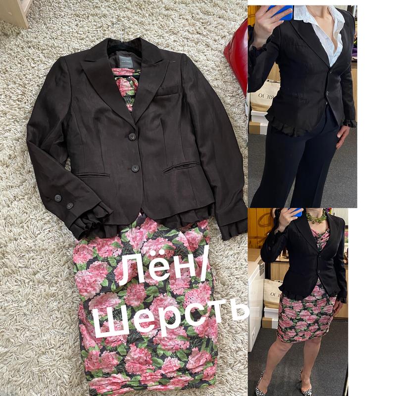 Шикарный стильный пиджак с шикарным составом лен и шерсть 50/50, размер указан 38, на фото на 40 и рост 170. Замеры плечи 40, рукав 65, ПОГ 50, ПИТ 42, ПОБОДЫ 50, длина 65