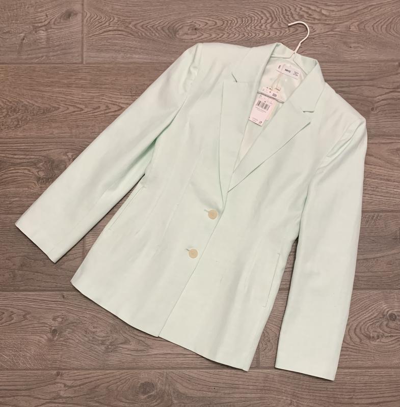 Пиджак льняной Mango р. M/38/10 Нежный мятный цвет. Есть карманы. Склад: 61% льон, 39% котон.
