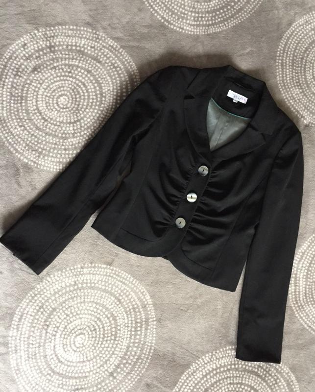 Изысканный жакет от английского бренда NEXT. Супер качество пошива. Очень красивый крой по спинке приталенный, перед с драпировкой. Ткань костюма средней плотности. Стан идеален. Без нюансов. Плечи - 41 см Пог - 46 см Пот - 41,5 см По низу 1/2 - 50 см Длина рукава - 64,5 см, 57 см с манжетом Длина - 54 см