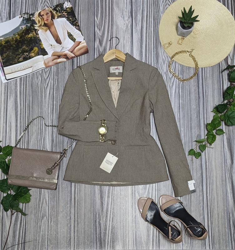 Доброго дня, для точного визначення підійде річ або ні, порівнюйте будь-ласка з вимірами своєї подібної речі, а не зі своїми об'ємами. Рекомендую перед замовленням прочитати інформацію в розділі "Про мене" це займе декілька хвилин Вашого часу але там багато корисної інформації 🫶 Актуальеий приталений бежевий жакет. Викладний гострий комірець. Є поролонові підплічники та петля для вішака. На бежевій підкладці з підкладочної тканини. Рукав довгий з трьома гудзиками. Є дві передні маленькі кишені знизу. Приталений. Застібається на один гудзик, також є один запасний гудзик. Жакет з тонкої щільної тканини, приємний до тіла, злегка тягнеться, не просвічується. Колір: Бежевий, Білий Принт: Смужка По бірочці розмір: UK 8, можна на 10 Стан: Новий (сток) Дефекти: Без дефектів. Виміри зроблені в півобхваті. Довжина виробу спереду від плеча 59см Довжина виробу по спинці 60см Довжина рукава з плечем 72см Довжина від пахви до низу 37см Ширина від плеча до плеча 39см Висота пройми 23см Півобхват грудей 46см Півобхват талії 40см Півобхват низ 51см Ширина рукава зверху 15.5см Ширина рукава посередині 14см Ширина рукава знизу 13см Склад тканини : 49%Віскоза, 49%Поліестер, 2%Лайкра. Підкладка: 100%Ацетат(штучний шовк) Оплатити можна через Безпечну покупку або оплатити на карту Приватбанку. Доставка можлива Укрпоштою або Новою поштою. Бронювання на оплату тільки одна доба. Не забудьте ПІДПИСАТИСЬ щоб не пропустити новинки та розпродажі. Вдалих покупок 🌹