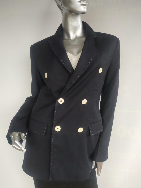Піджак,жакет з тоненької шерсті.Є нюанс під пахвами на фото показала сильно приблизила при носінні взагалі не буде видно.Заміри плечі 42см, ПОГ 50см, ПОТ 46см,ПОБ 52см, довжина 75см, довжина рукава 61.