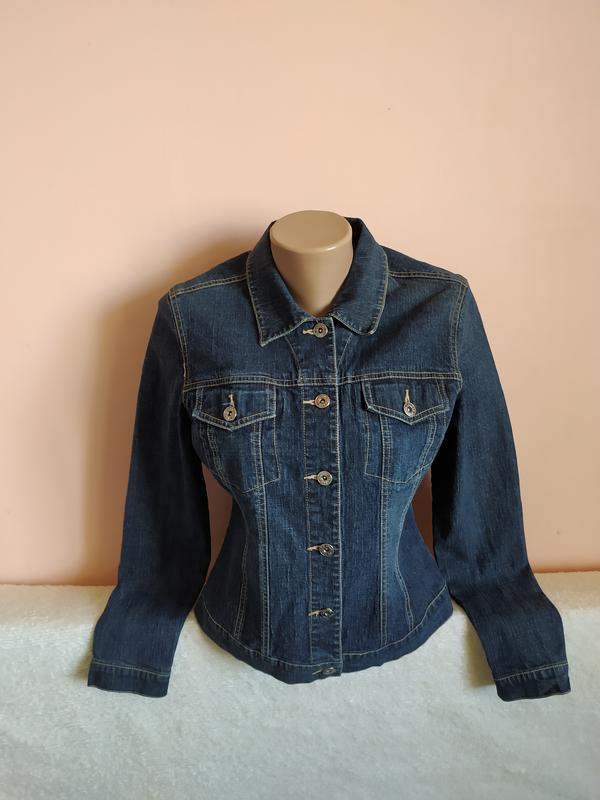 Як нова!Модна джинсовка, джинсова курточка чи піджак з кишенями р. 12. Колір реальний фото,склад нитки на фото. Заміри:довжина 57,5 см, ПОГ 46,5 см. Пересилання лотів Укрпошта,Нова пошта.