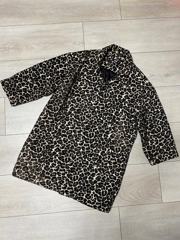 Удлиненный пиджак в леопардовый принт с коротким рукавам