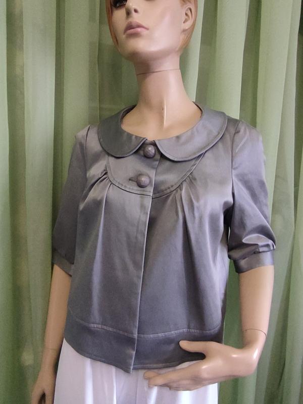 Жакет новий (!) не носився. довжина 54 см розмір 16 uk пог 54 см пот вільно на розмір (застібається на 2 гудзики по грудях) плечі 39 см Коттон 52 % поліестер/ еластан