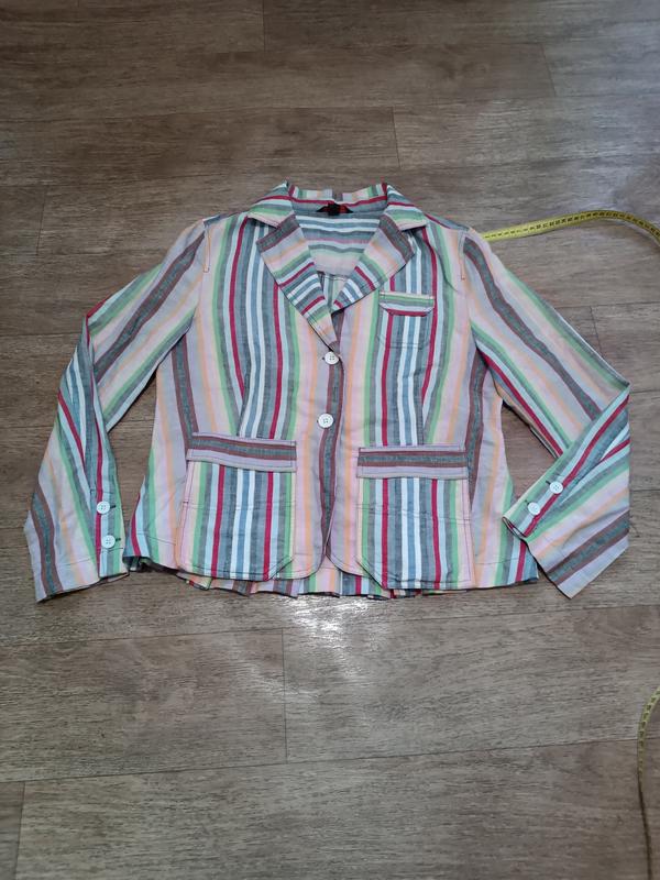 Классный летний пиджак.Ткань лен 55% и картон 45%.