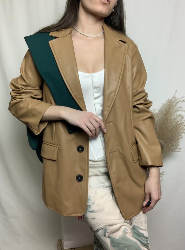 Кожаный пиджак / пиджак из экокожи / пиджак карамельного цвета / primark