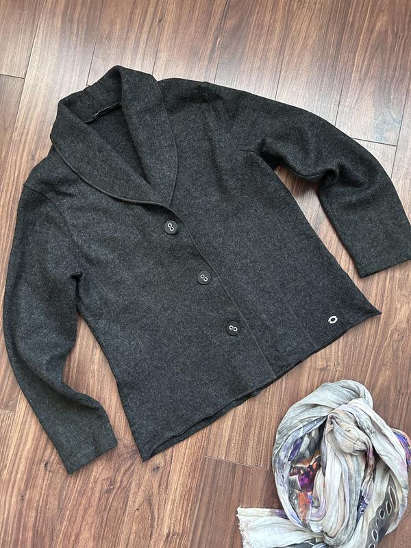 жакет Lisa Tosca 100% шерсть Размер M Свободный крой Однобортный на трех пуговицах Ткань типа плотного трикотажа Пог 50-53 Пот 47-50 Поб 52-56 Плечи 42 Рукав 57 Длина 60