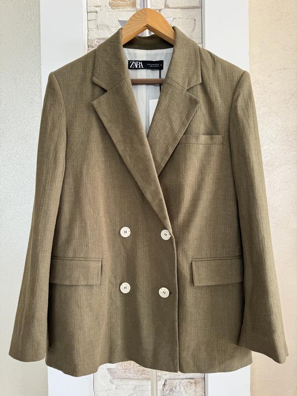Двубортный жакет с длинным рукавом и воротником с лацканами. Выраженные структурированные плечи, передние карманы с клапанами и застежка на пуговицы спереди. РОЗМІР: XS oversized ЗАМЕРЫ: длина 69 плечи 44 ПОГ 49 ПОТ 50 низ 55 рукав 62 СОСТАВ: лен вискоза СТАН: новый с биркой ➖➖➖➖➖➖➖➖➖ Вещи в наличии👗🧥👠 Фото на себе не делаете. 🙅♀️ Отправка: НП, Укрпочта📦 Вся необходимая информация придам😊