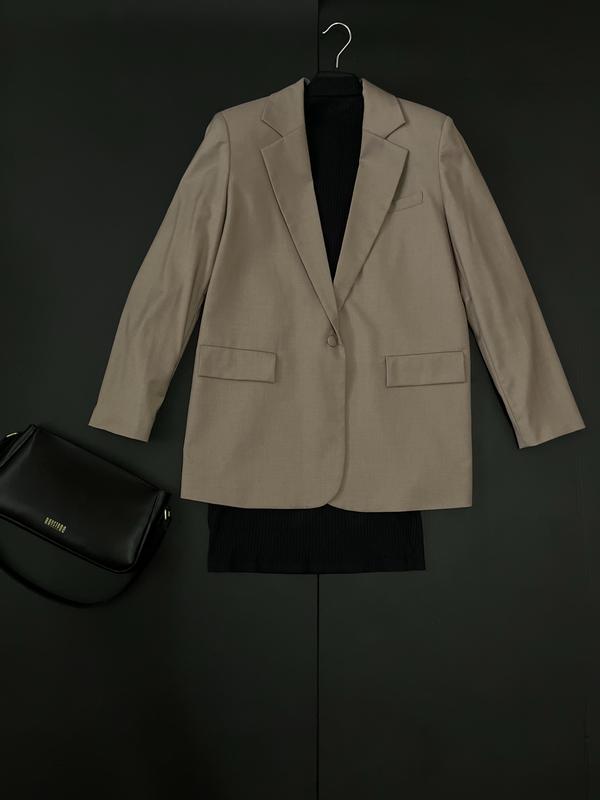 Удлиненный пиджак, прямого покроя, жакет свободного кроя,кольора мокко.