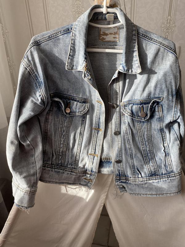 Джинсовый пиджак, жакет, укороченный, замеры: Пог 48 Длина 50 Рукав от горловины 64,5