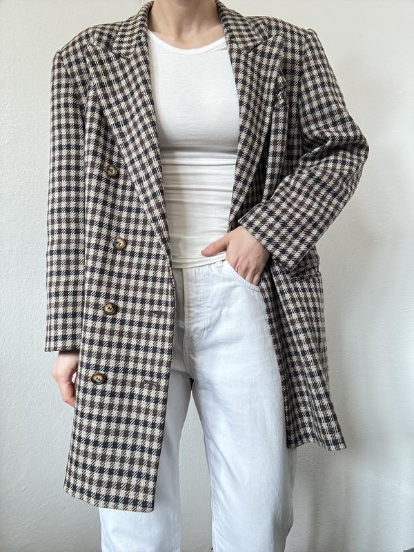 Шерстяной пиджак двубортный жакет в клетку блейзер двубортный пиджак шерсть жакет шерстяно...
