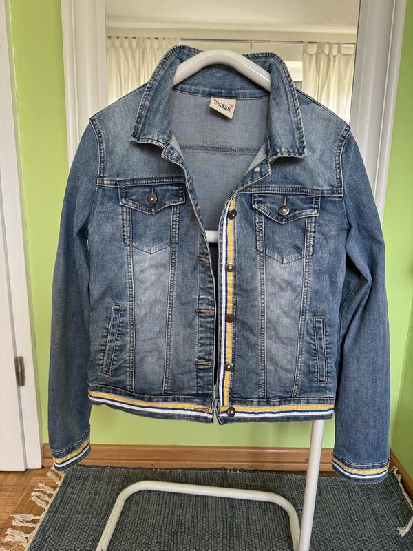 Піджак джинсовий. На біркі вказаний розмір L/40. Орієнтуйтеся по замірах. Довжина виробу від плеча 51,5. Довжина рукава від плечового шва 64. Ширина плеч по спинці 42. ПОГ 48. ПО в низу 48. Недоліків немає. Дуже класна якість. Недоліків немає. Дуже класна якість. Ширина рукава на манжеті 12см. Джинс тягнеться.