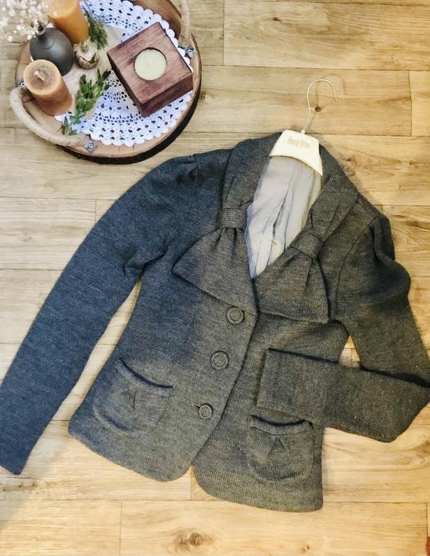 Пиджак жакет вязаный серый стильного и оригинального кроя на пуговицах Стиль ретро, винтаж Вязка стрейчевая, хорошо тянется С подкладкой, на рукавах без подкладки Размер XS-S/ 34-36 Пог 41, пот 36, рукав 61, плечи 35, длина от шеи по спинке 54, спереди 58 см, Состояние нового, без дефектов.