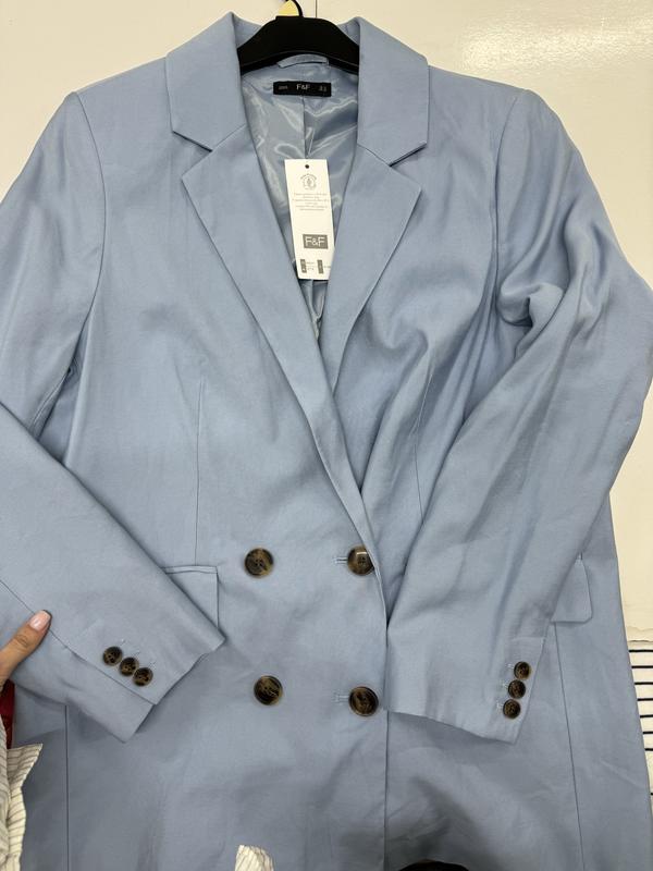 Голубой пиджак женский из вискозы новый с этикетками, бренд f&f со скидкой-50%