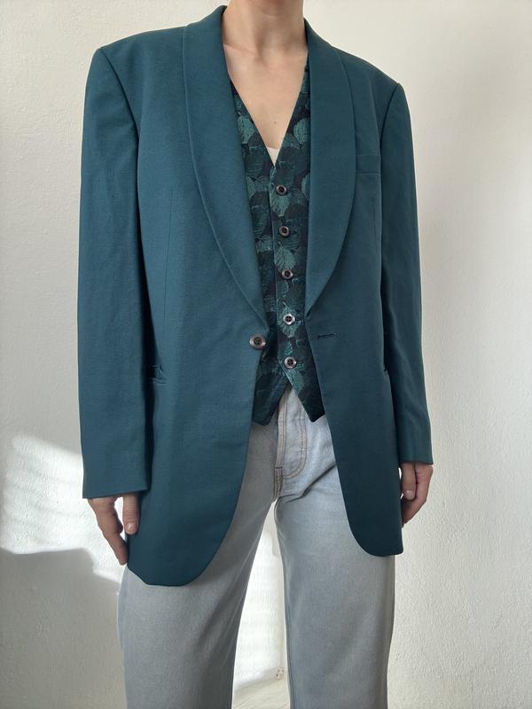 Шерстяной пиджак изумрудный жакет шерсть блейзер смокинг жилет жилетка безрукавка комплект...
