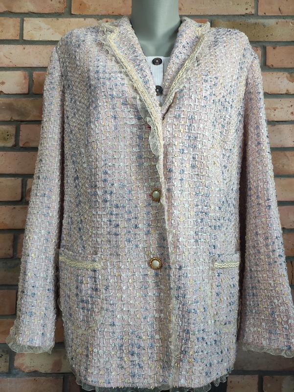 Стильный фирменный пиджак. Полиэстер, есть подкладка, не тянется. Новый (без этикетки). Размер около 54 длина ОГ ОТ ОС плечи рукав