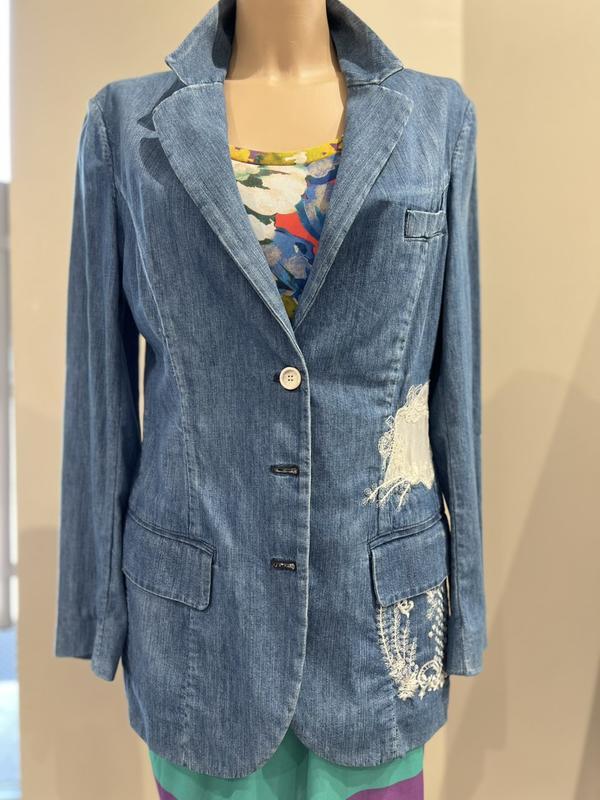 неизменная женственннсоть и элегантность. городской летний жакет с декором кружева. р 44 (чуть маломерит. )