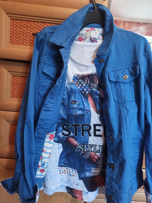 Купишь новый джинсовый пиджак в подарок футболка. Футболка стана новой одета один раз. Продам по отдельности. Футболка - 150 грн Пиджак -250 грн Вместе продам при 300 грн.