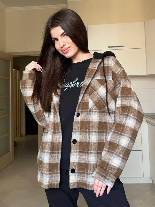 Теплая женская рубашка в стиле casual с удобным капюшоном и шнурками. Мягкая, плотная ткань, достаточно теплая. Классический прямой крой рубашки. Рубашка застегивается на пуговицы. На груди имеются карманы. Имеет длинные свободные рукава с манжетами. По всей длине рубашки стильный принт в модную клетку. Размеры:42-44,46-48 Цена: 870 грн. Ткань:турецкая байка Супер 🔥 качество. Расцветки:в ассортименте Замеры: Обхват груди: (42-44)-110см, (46-48)-118см. Длина (42-44)-67-74см (46-48)-68-75см. Рукав 76см.