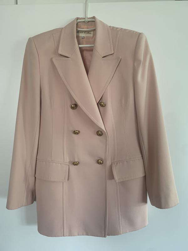 Пиджак, жакет двубортный на подкладке персикового цвета полуприталенного силуэта, с металлическими пуговицами. Бренд Histore de plaire, Франция Размер указанного: 3. Подойдет на S, или небольшую М. Замеры: длина по спинке 71 см, длина рукава 59 см, плечи 40,5 см, полуобхват под рукавами 49,5 см, полуобхват талии 46 см, по низу 53,5. Состояние очень хорошее, но на воротнике есть незначительное загрязнение.