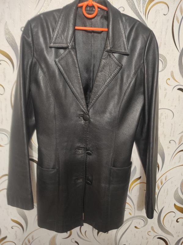 шкіряний піджак на підкладці, є кишені, в кишенях ліпучки