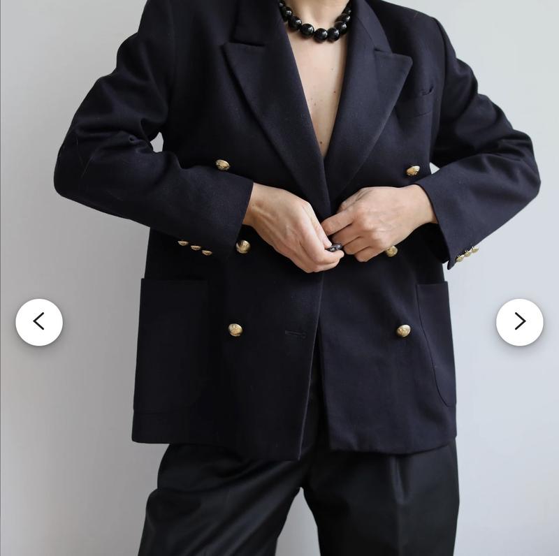 🤎 Він шикарний, ґудзики у стилі Balmain. Стиль 80-х років. На закордонних сайтах вартість стартує від 90$. Є сліди від брошки , два маленьких проколи . Матеріал -100% вовна ( лана) 🤎Виміри : довжина -74, пог-51 ( у зімкнутому вигляді), довжина рукава -59, ширина плечей -40. ☝️ Брюки теж у продажі українського бренду vovk, разом виглядає як костюм, дуже стильно