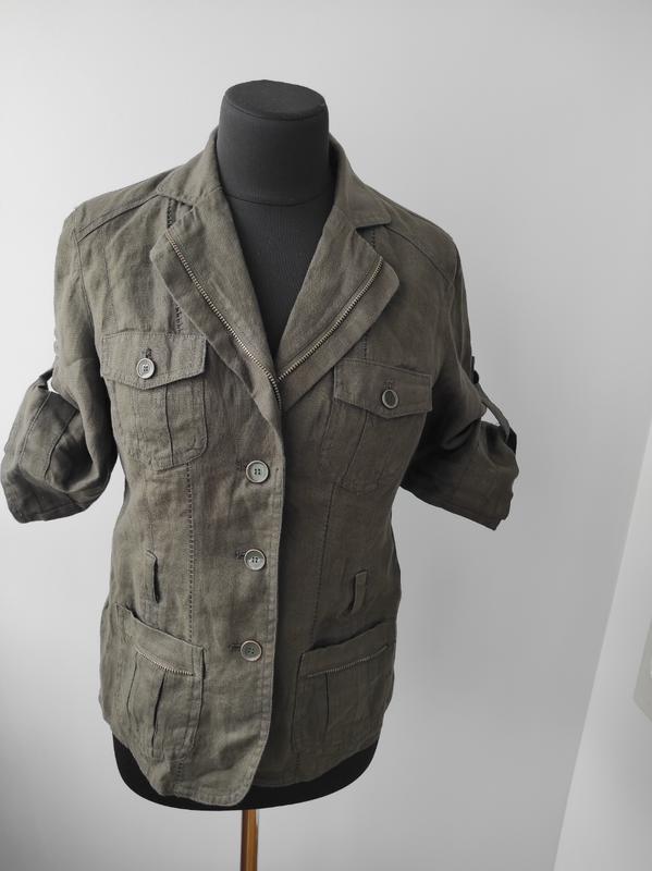 Жакет пиджак с коротким рукавом М р от bonita Размер - М-L Цвет - хаки 45 % лен 55% вискоза Длина - 64 см Пог - 48 см Пот - 45 см Низ - 50 см Рукав - 38 см Плечо - 12 см