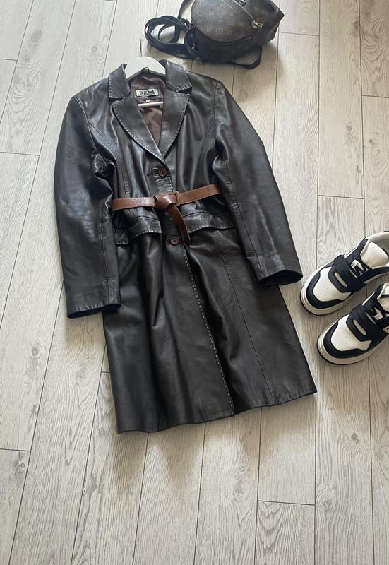 Распродажа! идеальный кожаный тренч /пиджак модного шоколадного цвета .