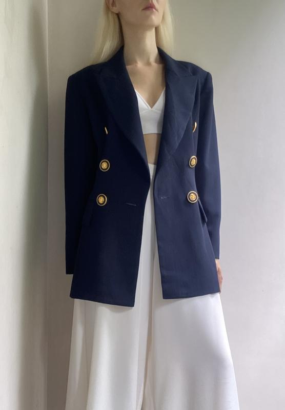 Винтажный жакет женский moon dew двубортный пиджак синий с золотыми пуговицами