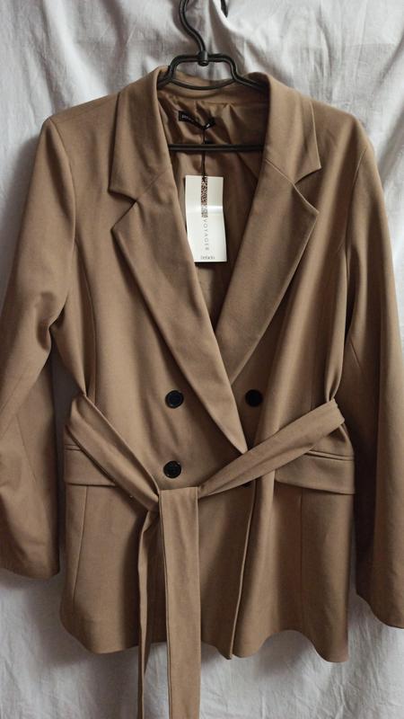 Новый женский двубортный пиджак De Facto бежевого цвета, на подкладке, есть пояс. Состав: полиэстер, вискоза, эластан. Размер 40 евро ширина под рукавами 52 см, длина 70 см, длина рукава 59 см. Продажа по полной оплапе на карту.