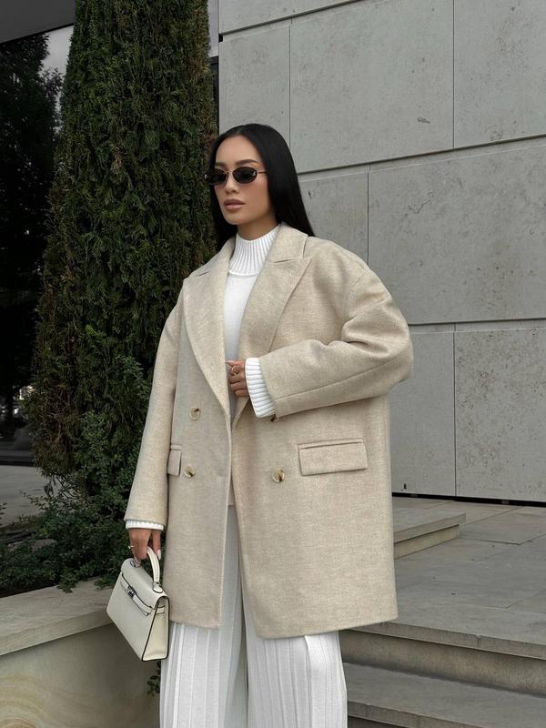 Базовый двубортный жакет "Вояж" Размер: оверсайз Ткань: хлопок 15%, полиэстер 85% Уход: ручная стирка или в стиральной машине на деликатном режиме до 30-40°С, выставляя отжим до 800 оборотов. Гладить при максимальной температуре 110 °C. Не отбеливать. Производство: Украина _____________________________ Замеры: длина по спинке 86 см Плечо 24 см Спущенный рукав 50 см Полу обхват комди 59 см Полу обхват талии 59 см Полу обхват бедер 61 см
