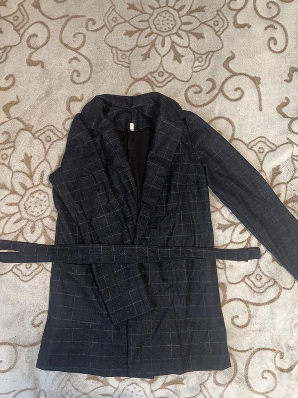 Пиджак теплый 46 размер Цвет темно синий с принцем в клетку Есть пояс и карманы