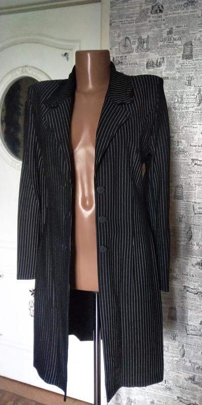 Женский сюртук в полоску, состояние идеальное. Размер м. Замеры: плечи 42, рукав от плеча 63, пог 44, пот 40, поб 50, общая длина 100. Трошки тянется. Безопасная оплата - только Укрпочта.
