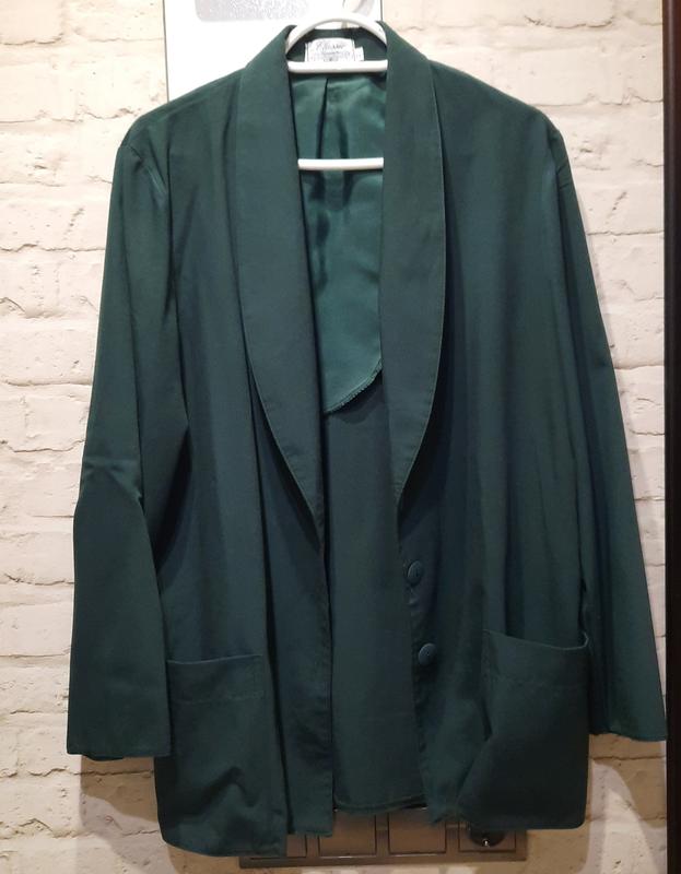 Глубокий зеленый цвет. Прямой не приталенный. Большие вертикальные карманы. На мой рост 160см и размер М красиво. Замеры по фото