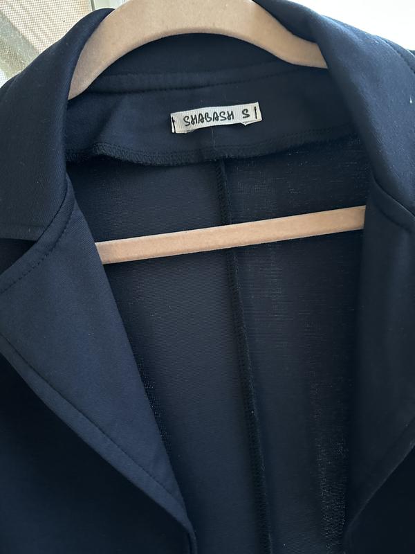 Удлиненный пиджак размера S, прекрасное состояние, носилось несколько раз. Не застегивается, что-то граница кардиганом и пиджаком. Не продавала бы, и стал за маленький.