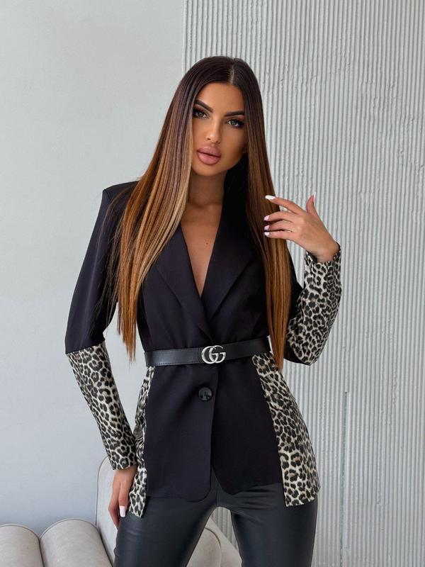 Пиджак №636/14 Ткань: костюмка+экокожа Размеры: 42-46 и 48-50 Цвет: черный+принт леопард 🏷️Цена: 820 грн. Застегивается на пуговицу, на подплечниках Длина 70см, длина рукава от плеча 60см 🔹Размер 42-46- ОГ-51см 🔹Размер 48-50- ОГ- 56см
