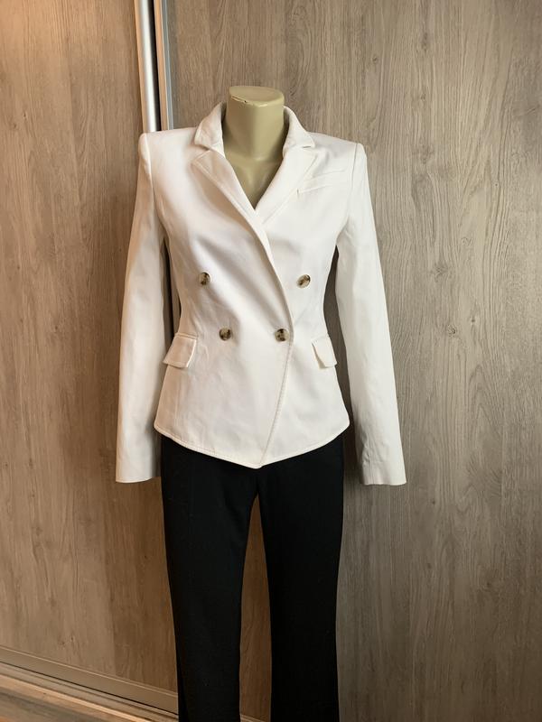 Шикарный стильный брендовый жакет в белом (молочном), на пуговицах, на подкладке, кармане, идеальном состоянии. Плечи 36см Полу объем под руками 42см Полу объем в талии 37см Низ 46см Длина рукава 60см Длина изделия 54(62) см Доставка: Отпрашиваю по Новой почте и Укр-почтению после полной оплаты на карту