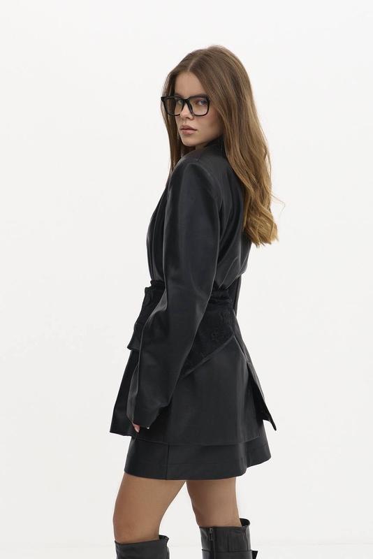 Піджак з еко шкіри Розмір: xs-s, m-l Тканина: еко шкіра на замші + підкладка Колір: чорний Спідниця також у продажу