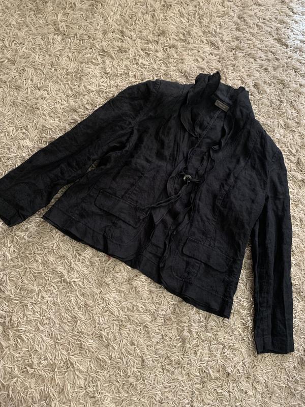Porcini. Відмінний стан. Без зауважень. Без підкладки, всі внутрішні шви оброблені стрічкою. 100% льон. Колір чорний. Є маленькі підплічники, які за потреби можна відпороти. Маркований розмір 44. Заміри на фото.