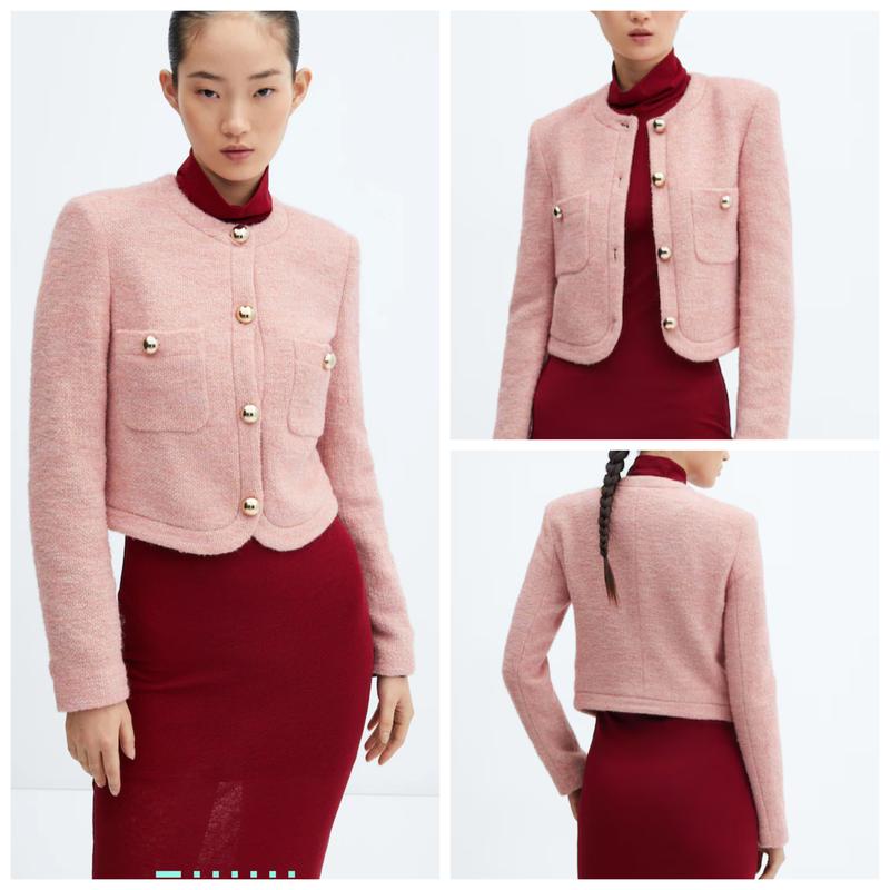 Жакет,піджак Mango, оригінал! Купувала в Іспанії,з офіційного сайта,нова колекція! Гарного,ніжного кольору,рожевий,персиковий,красива,фактурна тканина👌🏻срібна фурнітура. На підкладці. Гарний склад,є на фото:39%бавовна,9% вовна,2% віскоза та 50% полієстр. Заміри є на фото: -довжина 49-50 см -довжина рукава 61 см -заміри в районі грудей 45-46 см -по низу 44-45 см Додаткові фото за запитом. Відправка новою чи укр поштою після оплати. Або новою поштою,за передоплатою за пересилку.