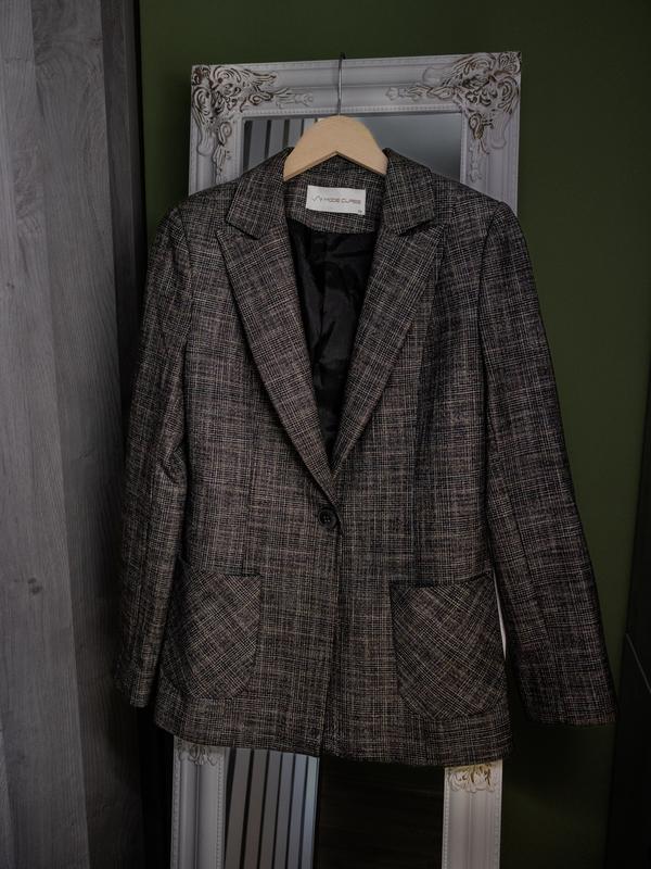 Жіночий піджак Матеріал: 49% поліестр, 49% віскоза, 2% лайкра ПОГ: 44 см Довжина: 65 см Рукав: 62 см