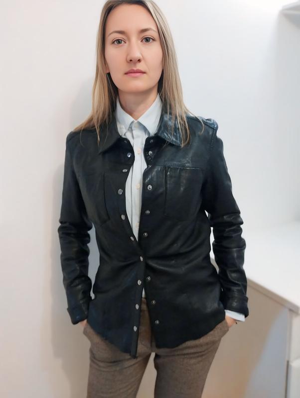 жакет рубашказ натуральной кожи,на подкладке, черного цвета.