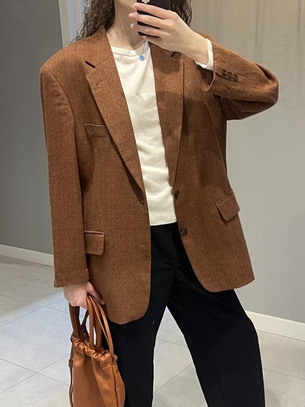 Шерстяной пиджак кирпичного цвета из мужской коллекции. Одето на S, рассчитано на мужской М. Имеет хорошую фактуру и подкладку из вискозы